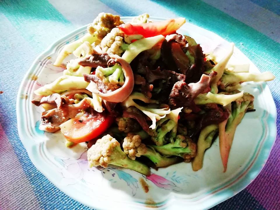 ได้ดอกกะหล่ำมาเมื่อวานเย็น ตลาดนัดแถวบ้าน สามดอกสิบบาท มันถูกมาก แต่ดอกไม่ใหญ่เท่าไรนะครับ