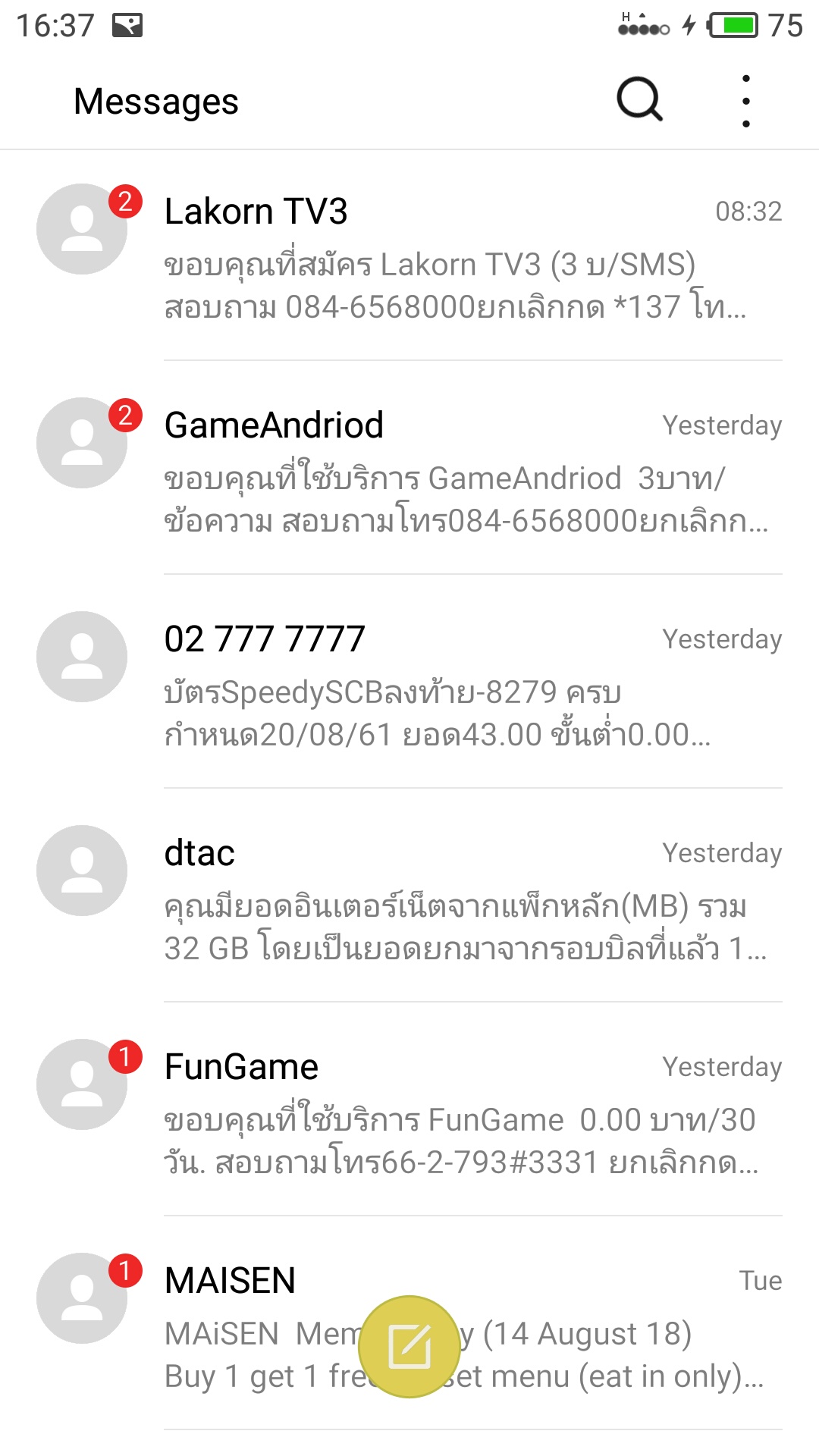 ช่วงเดือน สองเดือนที่ผ่านมา ผมประสบกับปัญหา SMS ที่ไม่เคยสมัคร ไม่ได้ดำเนินการสมัคร และไม่คิดจะสมัคร ที่ส่งมาถึงผมวันละ 5-6 ข้อความ ยิ่งในช่วงหลังวันที่ตัดยอดบิล กระหน่ำมามาก ยกเลิกไม่หวาดไม่ไหว