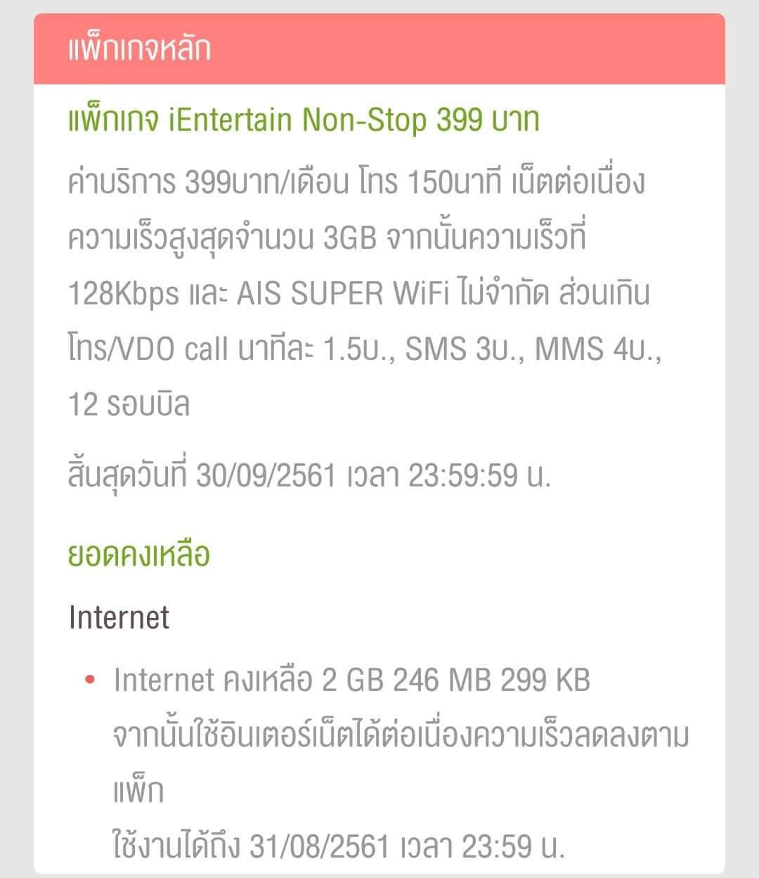 แต่พอผมเช็คข้อมูลการใช้งานเน็ตในแอพ AIS มันบอกว่า แพกเกจหลักผม เหลืออินเตอร์เน็ตให้ได้ใช้
