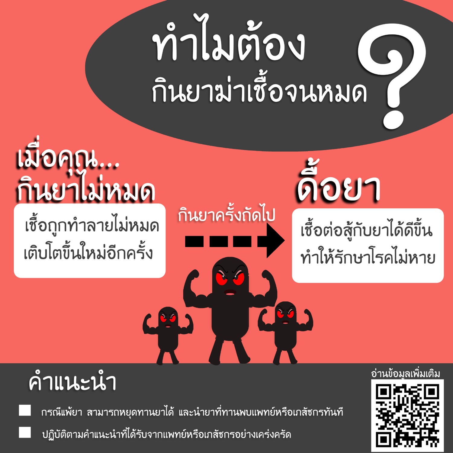 หากหยุดยาเองก่อนครบกำหนด จะทำให้เชื้อโรคถูกกำจัดไม่หมด