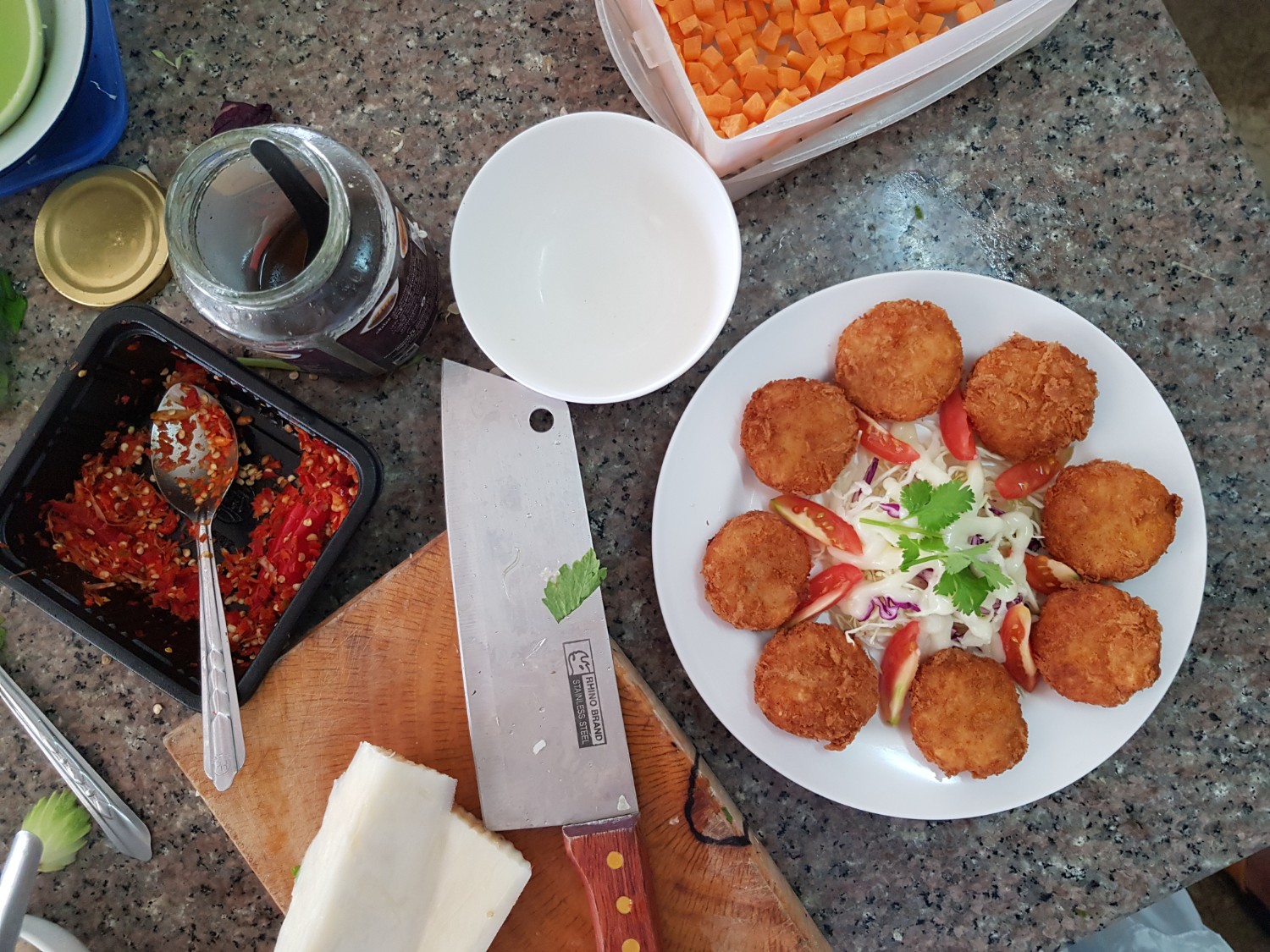 เราขอพ่อครัวแม่ครัวยืนดูเขาทำอาหารอยู่สักพักแล้วเราก็ขอเขาถ่ายภาพอาหารในครัวมาด้วยนะ พ่อครัวใจดีมากเลย