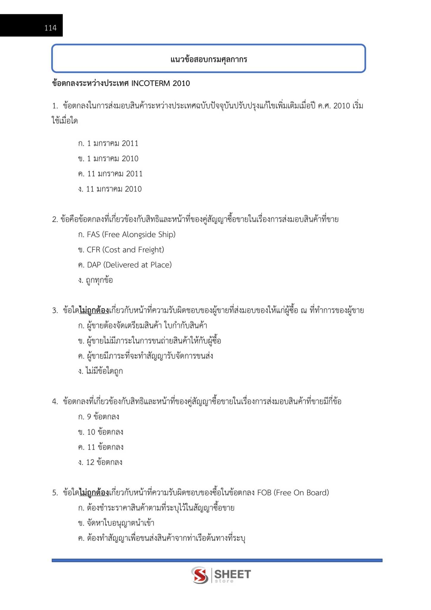 – ข้อตกลงการค้าระหว่างประเทศ (Incoterms 2010)