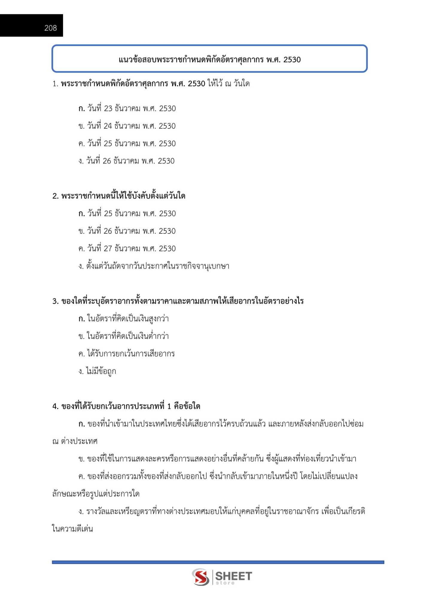 – แนวข้อสอบพระราชกำหนดพิกัดอัตราศุลกากร พ.ศ.2530