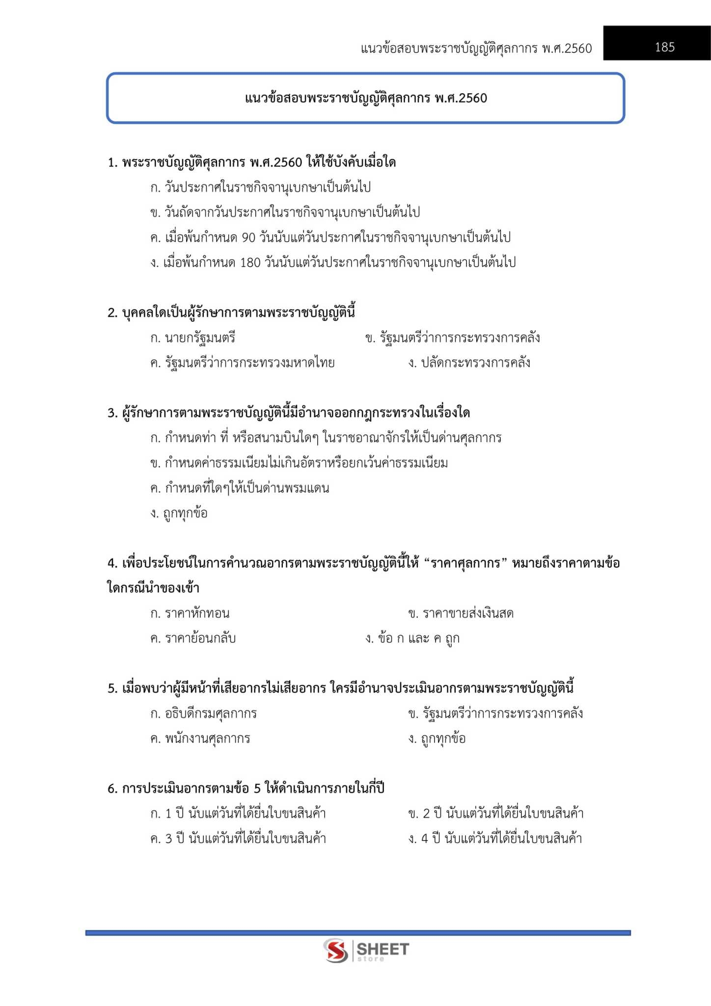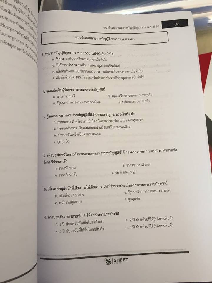 – แนวข้อสอบพระราชบัญญัติศุลกากร พ.ศ. 2560