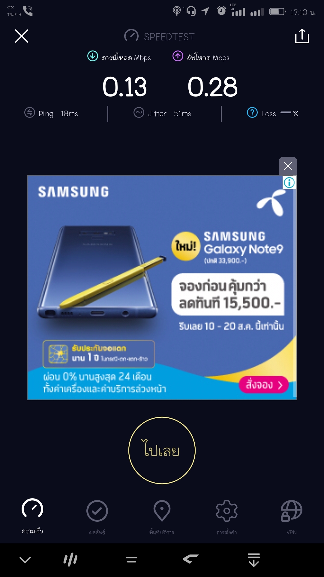 หลังจากก่อนหน้านี้ได้แจ้งทางดีแทคไปเรื่องอินเตอร์เน็ตช้า หลังจากนั้นก็กลับมาเร็วปกติเหมือนเดิมอยู่ประมาณ5วัน ตอนนี้กลับมาเหมือนเดิมอีกแล้วค้นหาในกูเกิ้ลยังค้างเลยครับ