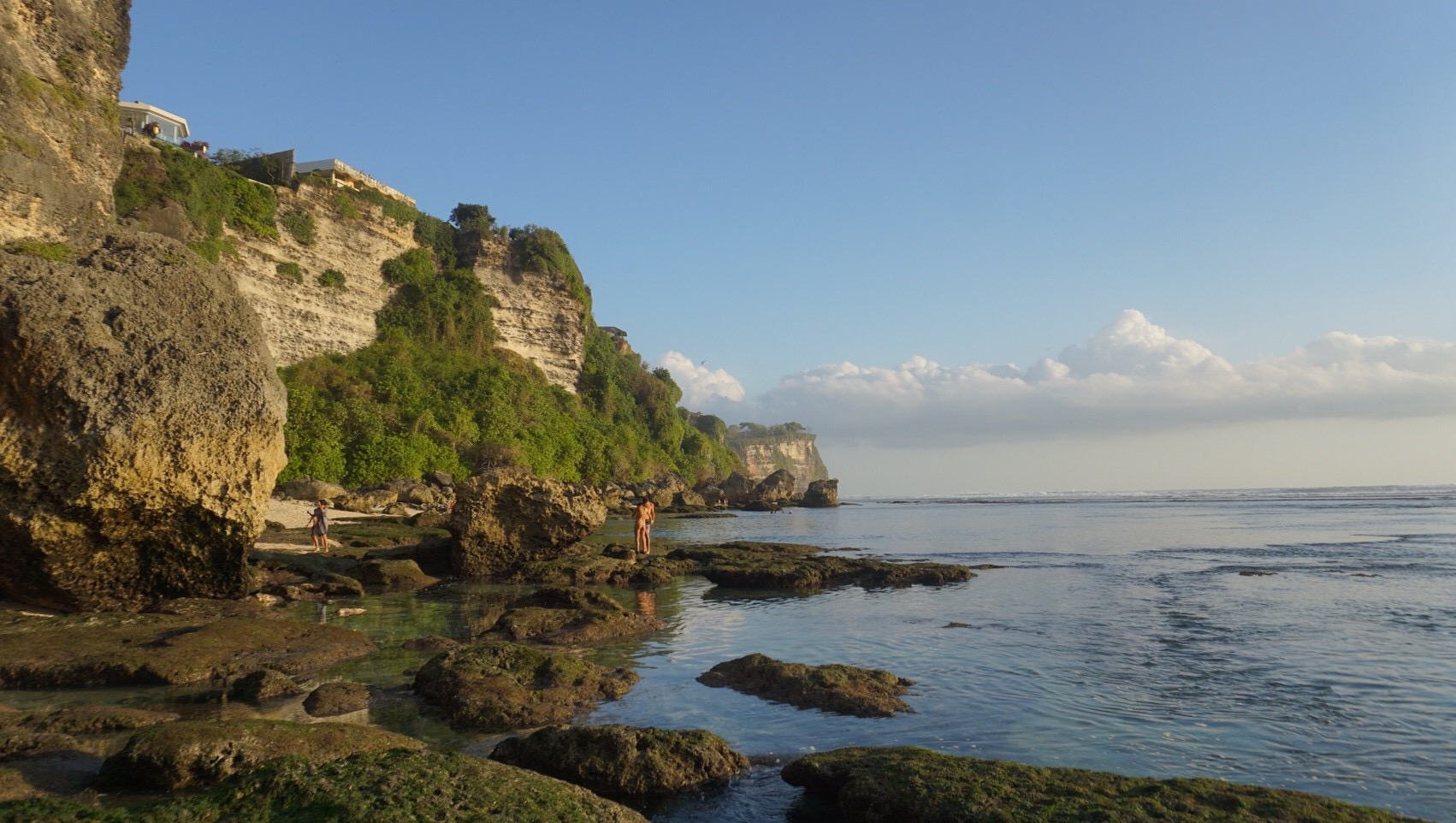 แล้วที่อูลูวาตูนี่มันมีอะไรป่ะ นอนนนนนนน ไม่ใช่สิไปเที่ยวกันขี่มอร์ไซค์จากที่พักมาสัก10นาทีก็ถึงแระจุดชมวิว พระอาทิตย์ตก แต่เราจะลงไปข้างล่างกันก่อนเพราะพระอาทิตย์ยังไม่ถึงเวลาตก ลงไปเดินเล่นริมเลดีกว่า