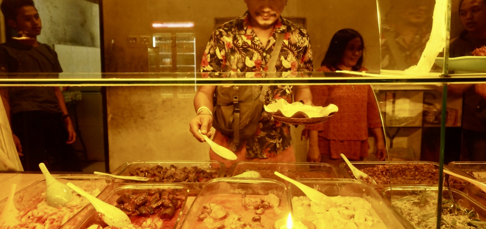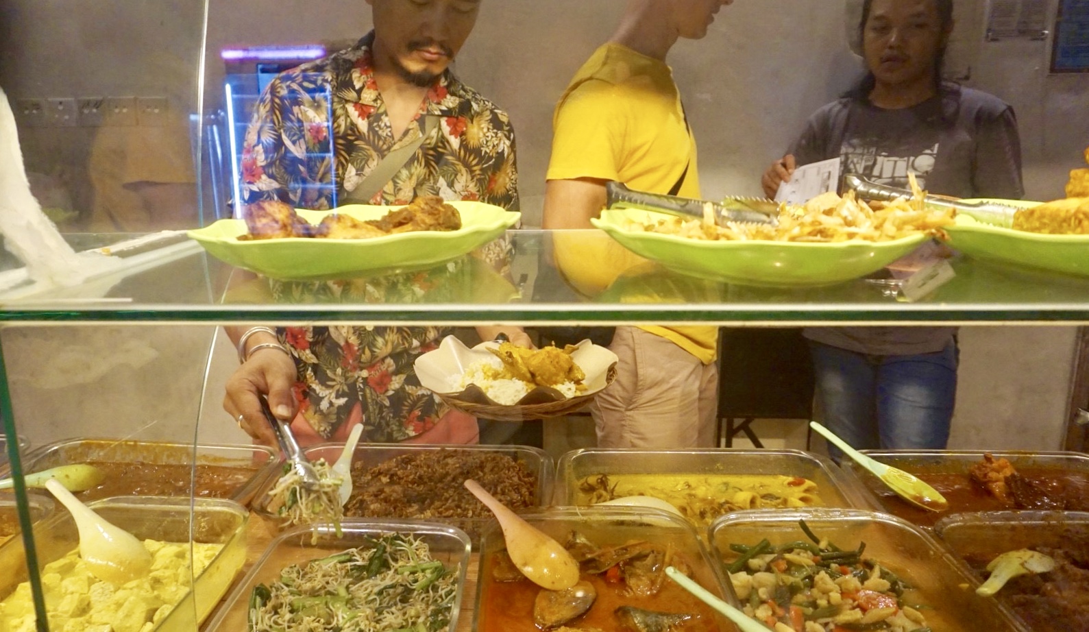 กลางคืนสวยกว่ามากก ร้านนี้ถ้าบ้านเราก็ร้านข้าวแกงริมถนนนั้นแหละครับแต่ที่นี้เค้าจัดการร้านแล้วดูดีทีเดียว