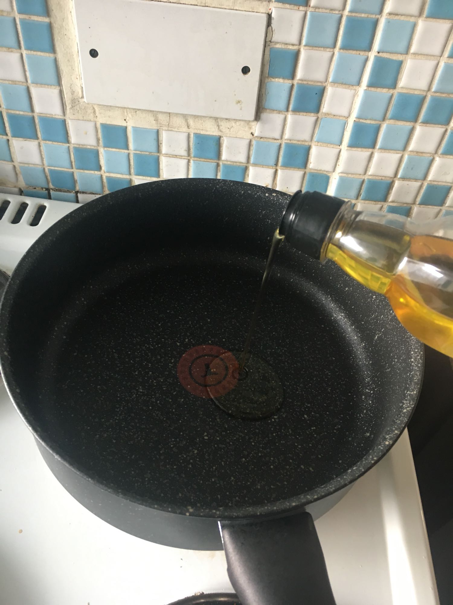 2.) ตั้งกระทะ ใส่น้ำมันมะกอกพอประมาณโดยใช้ไฟปานกลาง-สูง ปกติเราจะใช้กระทะ non stickค่ะ