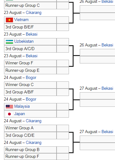 สรุปผลการจับสลากใหม่ ฟุตบอลชายเอเชี่ยนเกมส์ กลุ่ม A : อินโดนีเซีย (เจ้าภาพ), ฮ่องกง, สปป. ลาว, ไต้หวัน และ ปาเลสไตน์ กลุ่ม B : ไทย, อุซเบกิสถาน, บังคลาเทศ และ กาตาร์ กลุ่ม C : อิรัก, จีน, ติมอร์ เลสเ