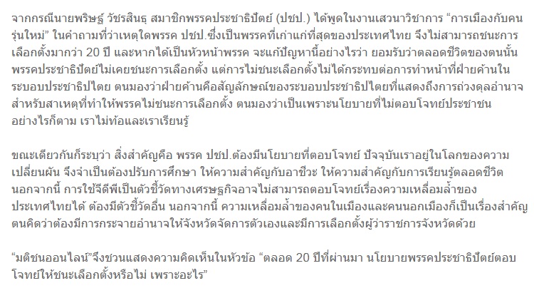 ตลอด 20 ปีที่ผ่านมา นโยบายพรรคประชาธิปัตย์ไม่ตอบโจทย์ให้ชนะเลือกตั้ง จริงหรือไม่ ....มติชนออนไลน์ .../sao..เหลือ..noi
