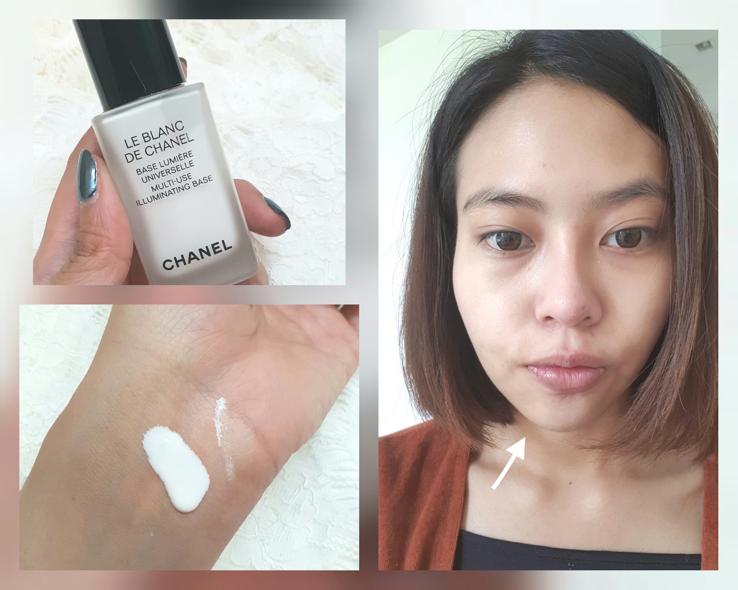 ขั้นแรก หลังจากบำรุงผิวหน้าต่างๆนานาแล้วนะคะ วันนี้เรามาในธีม “งานผิว” ก็ต้องเริ่มจากทำให้ผิวดีก่อน ด้วย LE BLANC DE CHANEL เบสจากคุณแม่ Chanel ที่จะช่วยปรับสีผิวให้เนียนสม่ำเสมอกัน ผิวเรียบขึ้น ทำให้แต่งหน้าง่ายขึ้น เครื่องสำอางติดทนนานขึ้น เนื้อเบสก็จะเป็นสีขาวๆ ลื่นๆ เกลี่ยง่ายดีค่ะ เปรียบเทียบให้ดูฝั่งที่ทาคือฝั่งลูกศรนะคะ