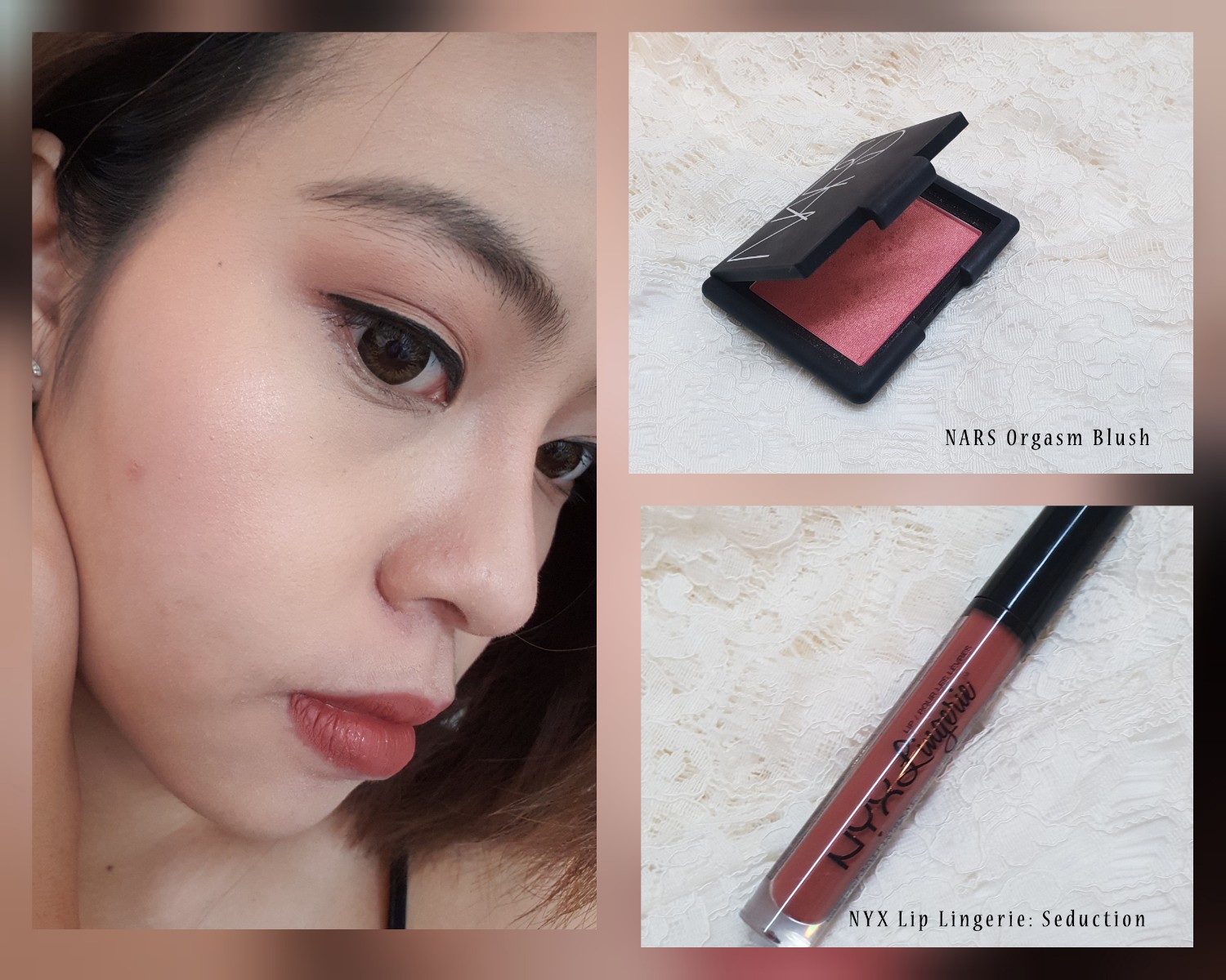 มาปัดแก้มให้ดูแก้มชมพู สุขภาพดีด้วย NARS Orgasm Blush ตัวโด่งดัง ตลับนี้เป็นตลับที่เท่าไหร่แล้วก็ไม่รู้ สีออกชมพู พีชๆ มีกลิตเตอร์เบาๆ กำลังงาม ทาแล้วดูสุขภาพดีมากๆ และทาปากด้วยลิป NYX Lingerie สี Seduction ที่การันตีโดยสาว Lily Maymac เน็ตไอดอลคนดัง ที่บอกเลยว่าใครทาก็รอด มีติดโต๊ะเครื่องแป้งไว้คือไม่ผิดหวังแน่นอนค่ะ