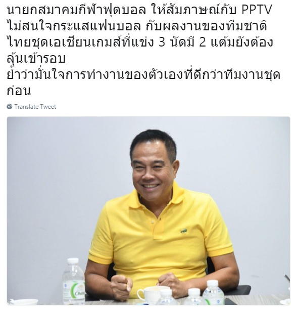 นายกสมาคมกีฬาฟุตบอล ไม่สนใจกระแสแฟนบอล กับผลงานของทีมชาติไทยชุดเอเชียนเกมส์