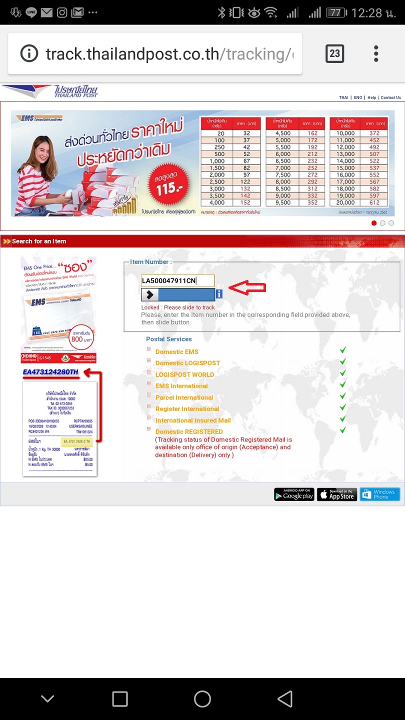 เรียน หน่วยงานไปรษณีย์ไทย ผู้เกี่ยวข้องประสานงาน สืบเนื่องจากได้จัดส่งเอกสารสำคัญ ด่วนพิเศษ ED623797814TH 14/12/2018 10.41น. ซึ่งต้นทาง อุบลราชธานี ถึง ปลายทาง กรุงเทพฯ เจ้าหน้าที่ต้นทางแจ้งว่าถึงภาย