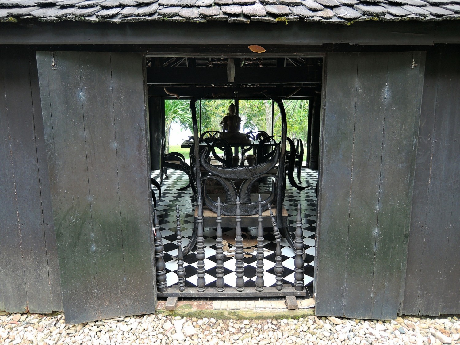 มาเชียงรายไม่ไป "บ้านดำ" ก้อแปลกแล้วล่ะ อีกหนึ่งสถานที่ที่นักท่องเที่ยวจะเข้าชม ที่จอดรถมีจำกัด (เพราะโดนรถทัวร์..ีนจองกันตรึม) ต้องใช้บริการข้างเคียงกับค่าจอดเพื่อความสะดวก ยังครับไม่ใช่ค่าจอดรถ...ค่าเข้าชมด้วยท่านละ 50 บาท..คุ้มครับขอบอก ศิลปะที่บ้านดำจะเน้นตามชื่อเลยครับ "ดำ" ดำจริง