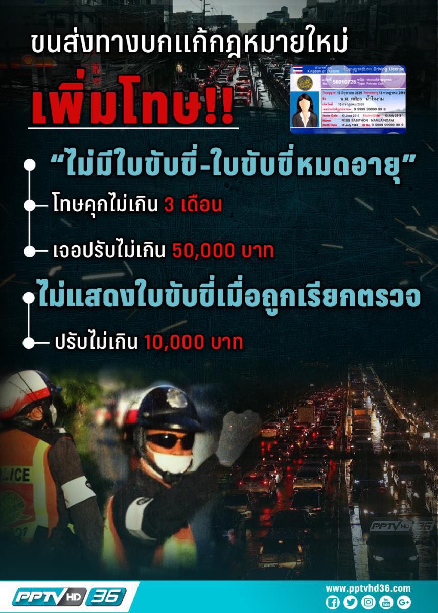 เพิ่มโทษไร้ใบขับขี่ปรับโหด 1 หมื่น "คมนาคม-ตำรวจ" เอาจริงและมีสิทธิ์นอนคุกอีก 3 เดือน