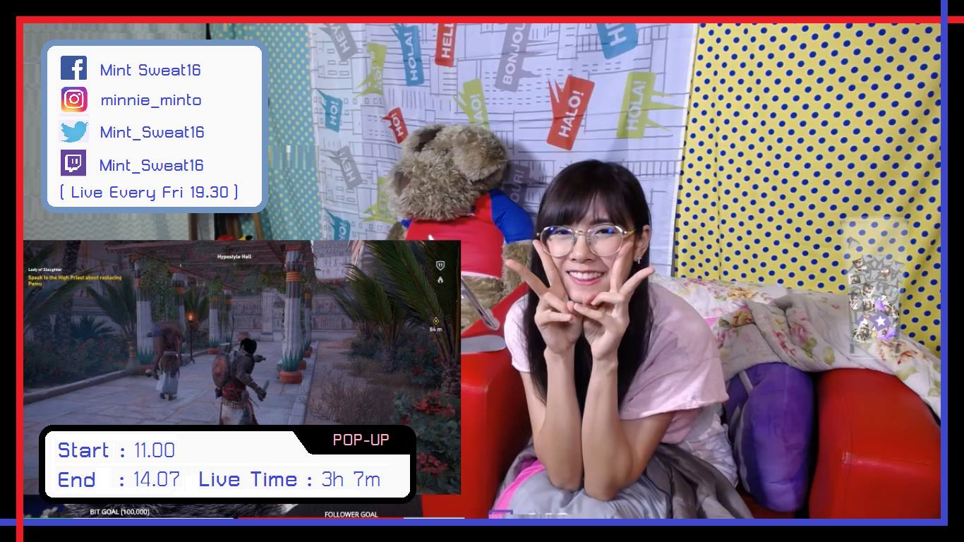 - ไลฟ์วันนี้มีร้องเพลงให้ฟังคลอๆด้วยนะครับ ดูคุณมิ้นเล่นเกมนี่เพลินดีจริงๆนะ บางทีเคลิ้มๆจะหลับ ก็จะมีเสียงกรี๊ดดดมาคอยปลุกด้วย ครบทุกอารมณ์จริงๆ ...วันนี้จบไลฟ์อยู่ที่เมืองที่ 2 และตัวละครอยู่ที่เลเวล 11