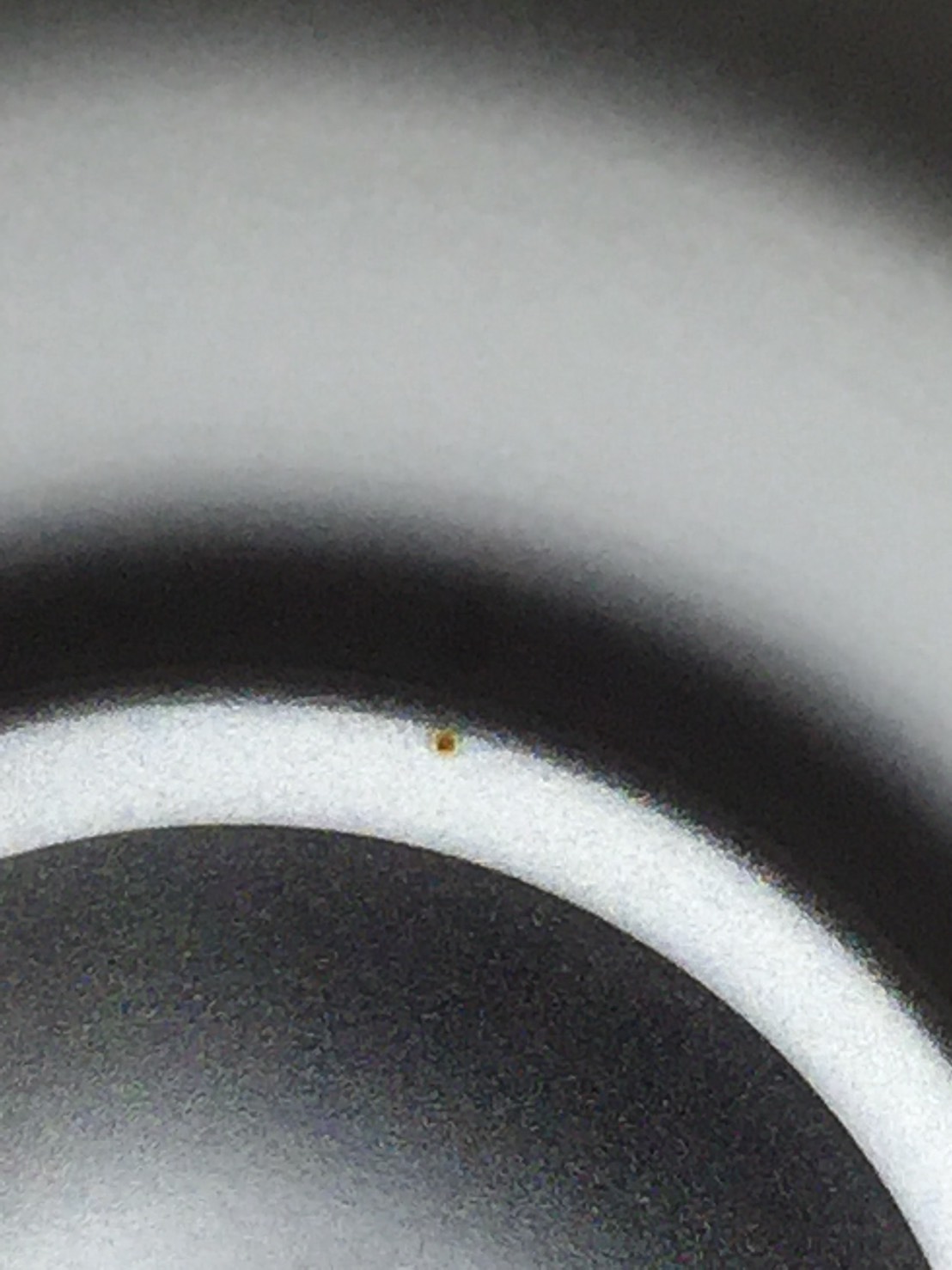 เริ่มสังเกตว่ามีจุดคล้ายกากชาติดตรงก้น ล้างแล้วก็ไม่ออก ลองเอาไม้ตะเกียบถูกก็ไม่หลุด
