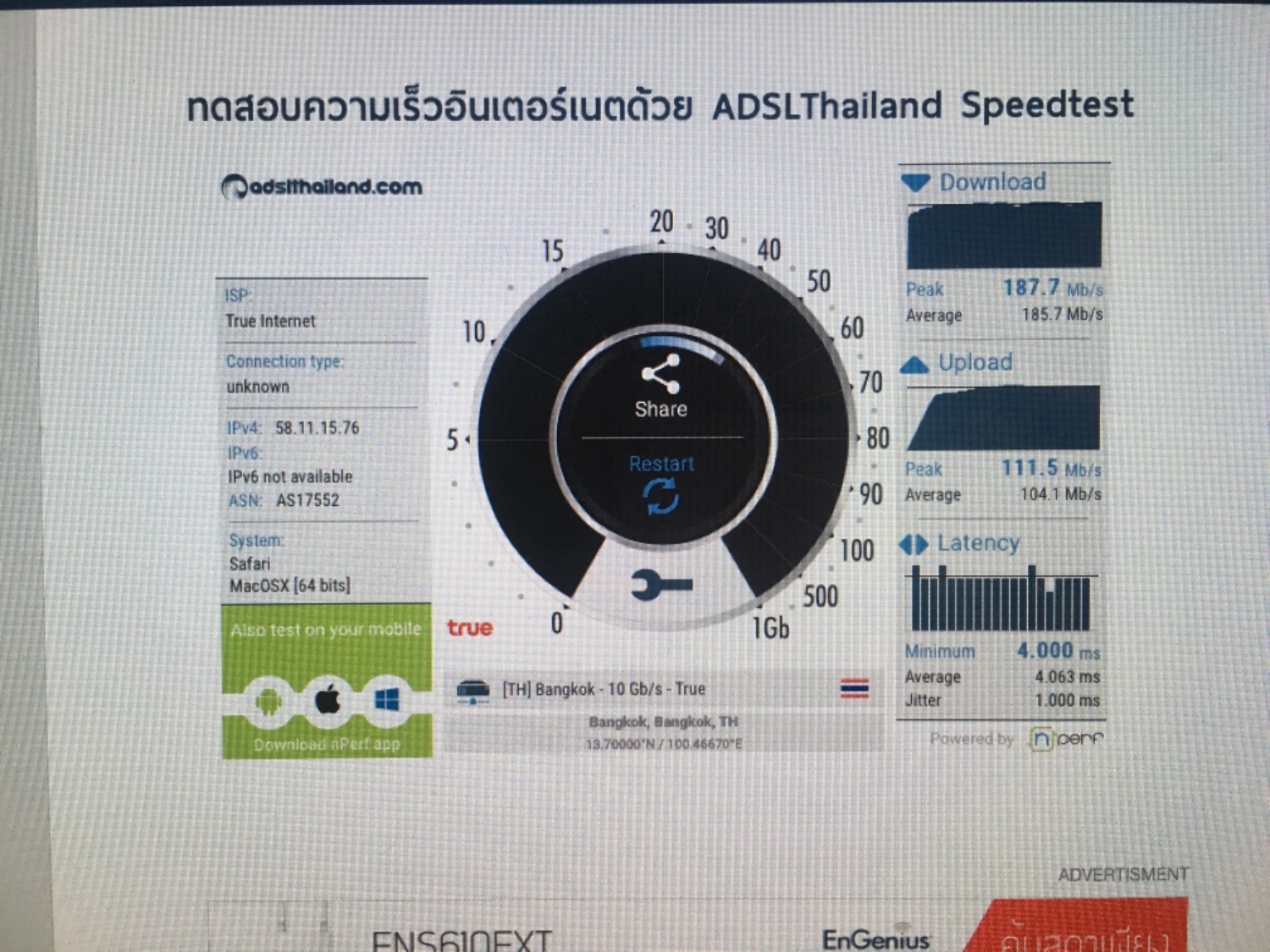 ผมสมัครโปรอินเตอร์เน็ตทรู 1 Gb แต่ผมได้แค่ 245 Mb โทรหา cc เขาก็ส่งช่างมาให้ตรวจเช็ค พอเช็คเรียบร้อยช่างเขาบอกว่าเครื่องคอมเราไม่รองรับความเร็วขนาดนี้ได้ ผมใช้เครื่อง IMac แต่ช่างบอกเครื่องผมไม่รองรับความเร็วนี้ ก็งง ว่าต้องใช้เครื่องแบบไหนถึงจะรองรับ เร้าเตอร์ใช้ Humax 4 เสา