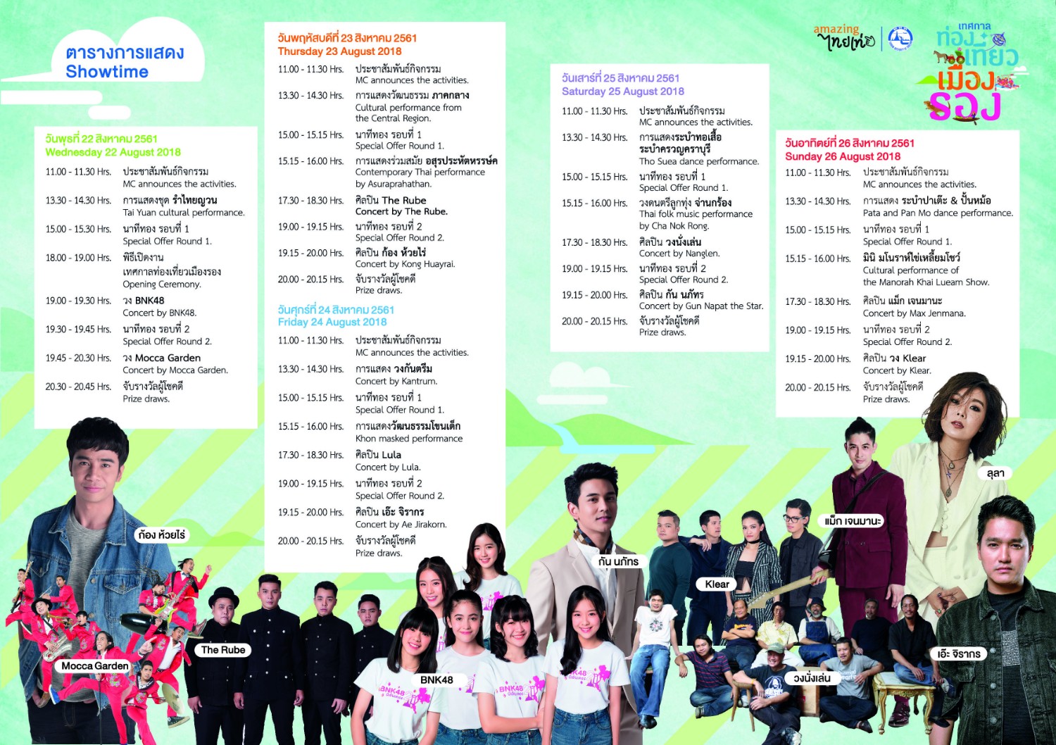 อ่อ! ก่อนอื่นขอเอาตารางการแสดงมาฝากก่อน เพราะในงานเราจะได้สนุกสนานกับการแสดงทางวัฒนธรรม การแสดงร่วมสมัย