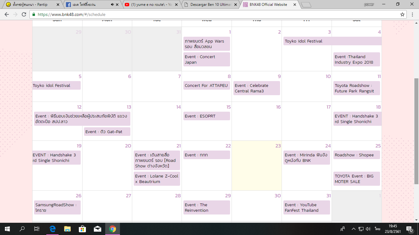 ที่เห็นคือตารางงานของน้องๆในเดือนนี้จากเพจofficialจากที่officialอัปเดทตารางงานล่าสุด แต่งานก็ยังประกาศออกมาเรื่อยๆ และยังไม่ได้อัปเดทลงเวปofficialอีก ถ้าอัปเดทอีกทีคาดว่า น่าจะเต็มทุกช่องสำหรับเดือนนี้ เรียกได้ว่า แทบทุกวันเลยทีเดียว บางวันแบ่งทีมกันไปตั้ง2-3งาน(คนให้ใช้เยอะขึ้นก็งี้หละ ตอนนี้แบ่งเป็น10งานน่าจะได้เลย) บางงานคนก็เยอะ บางงานคนก็น้อย พอมางานนึง แล้วจะไปต่ออีกงานตารางเวลาก็ไม่ว่างพอที่จะไปงานนั้นอีก งานนั้นบางทีเลยคนน้อยๆอยู่ งานที่เวลามันใกล้เคียงกัน พอมางานนึงอีกงานคนก็น้อย มันรู้สึกว่า ตามไปเชียร์ทุกคนไม่ทันอ่ะ มันเหมือนเฟลหน่อยๆที่ไม่สามารถไปหาทุกคนได้แบบเท่าเทียม งานที่คนไปน้อยแต่ก็ยังได้ยินเสียงเชียร์้สียงมิกซ์อยู่นะ น้ำตาจิไหลขอบคุณมากที่ไปเชียร์ TT ตอนวงตั้งแรกๆสัญญากับน้องไว้ว่าจะตามไปทุกงานเลย แต่เยอะขนาดนี้ไม่ไหว5555555 แต่ถือว่าเป็นผลดีกับทุกคน งานมาเยอะจนตามไม่หวั่นไม่ไหวแบบนี้เวรี่กู๊ดดดดดดดดดด ถือว่าดีมาก แต่งานที่คนน่าจะไปเยอะสุดก็น่าจะงานใหญ่ๆไม่ใช่งานย่อยๆอย่างสองสามวันที่ผ่านมา งานใหญ่ๆเช่นงาน TGS งานคอนเสิร์ตขอบคุณ งานคอนเสิร์ตที่ปูเป้เป็นPD