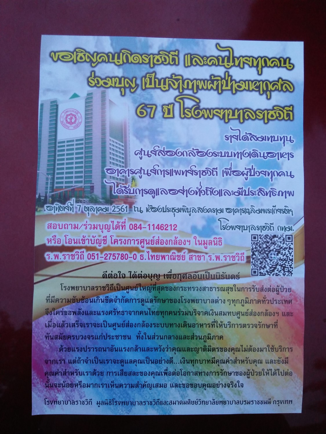ขอเชิญคนรักราชวิถี&คนไทยทุกคนร่วมทำบุญ #ผ้าป่าเพื่อศูนย์ส่องกล้องราชวิถี