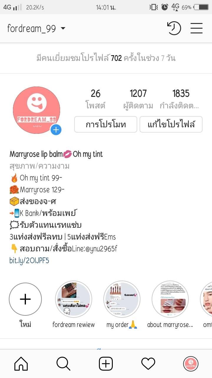 ปล.รูปโปรแม่เป็นรูปน้องของมุกเอง มุกถามแม่ว่าทำไมไม่เอารูปตัวเอง แล้วแม่ก็บอกว่ารูปแม่ไม่สวย ให้แม่ใช้รูปมุกดีมั้ย คือตอนนั้นหน้ามุกก็จะประมาณนี้(´⊙ω⊙`)สรุปก็คือใช้รูปน้องก็ได้ค่ะคุณแม่555 ตอนนี้ร้านมุกเปิดมาได้1อาทิตย์แล้วค่ะ ตอนนี้ใน ig มีผู้ติดตามประมาณ 1200คนค่ะ แล้วก็เปิดเพจในเฟสบุ๊คด้วยย ก็ให้เพื่อนมุกนี่แหละค่ะไปกดไลค์ให้555 อ้อแล้วก็มีสินค้าเพิ่มมาอีกตัวก็คือลิปบาล์ม marryrose🌹 ค่ะ ตัวนี้ก็มีคุณแม่มาช่วยอีกแล้วค่ะ