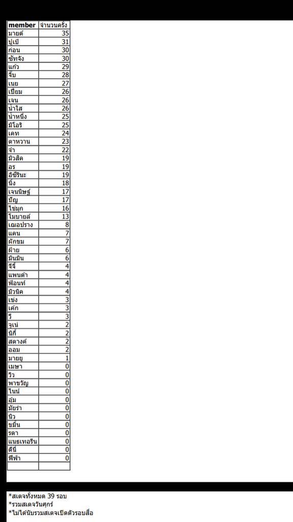 สถิติการขึ้นแสดง Theater BNK48 ถึงวันที่ 26 ส.ค. 2561 รวมทั้ง 2 รุ่น