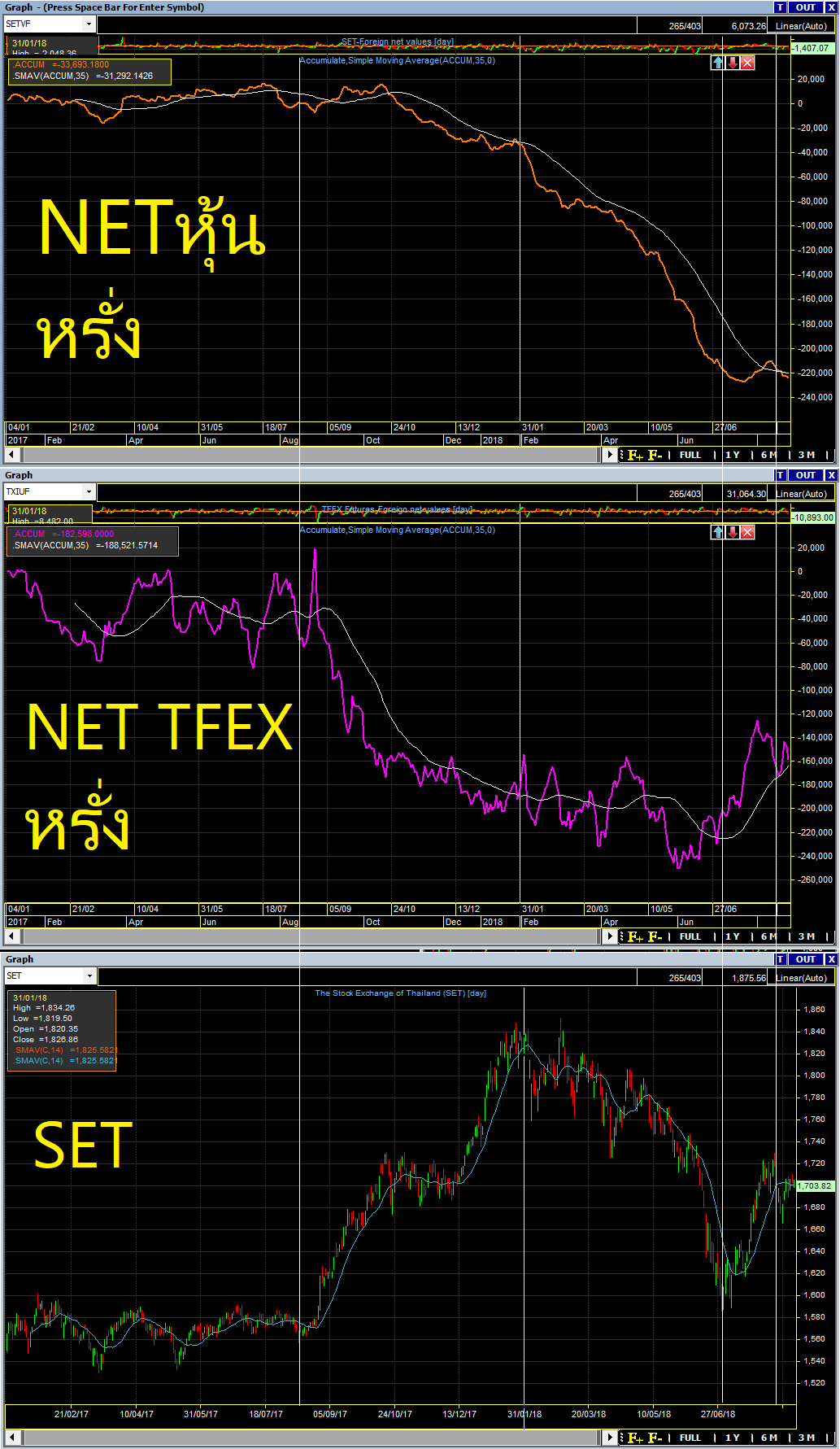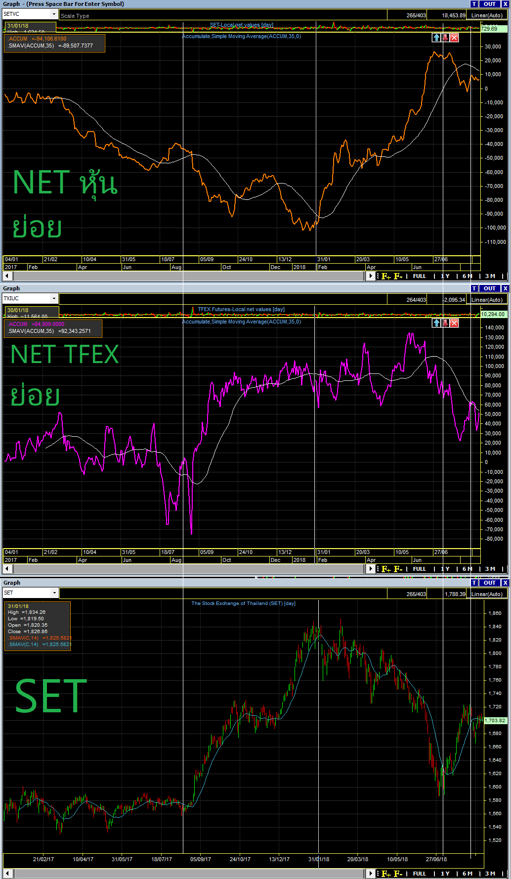 จากข้อมูล ซื้อขายสะสม หุ้น TFEX และ ดัชนี SET
