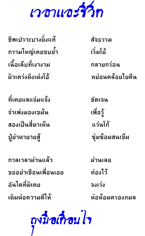 ถุงมือกวีหมายเลข 2 นี้ มาเป็นโคลงครับ กล่าวถึงสัจธรรมของชีวิต คล้ายว่าจะเตือนตนด้วย เตือนคนอื่นๆ ด้วย