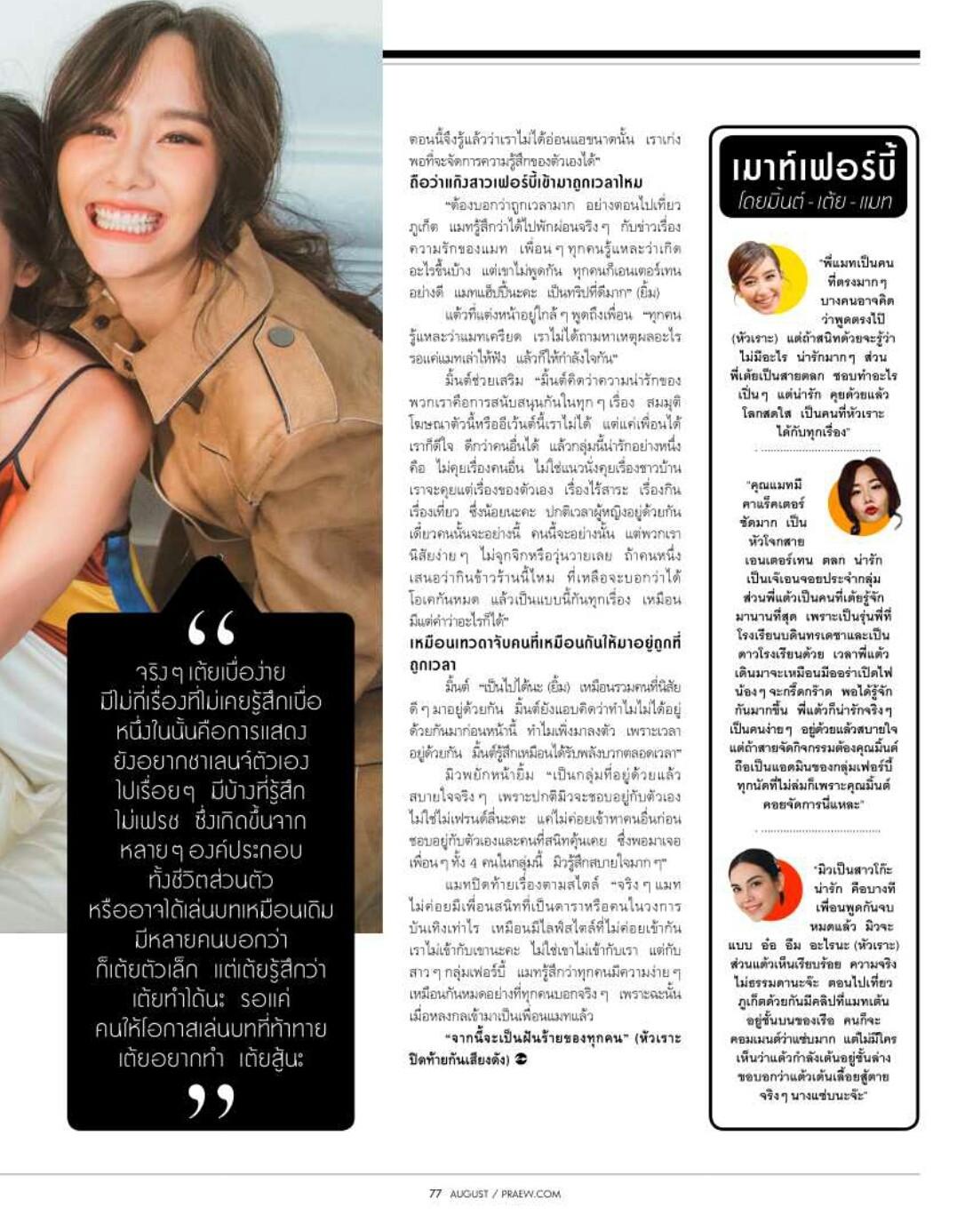 ส่วนมิว เดิมที สนิทกับแต้วเพราะแสดงละครด้วยกัน มิ้นต์ แต้ว มิว เป็นนางเอกละคร คุณชาย เลยสนิทกัน ส่วนเต้ย น่าจะสนิทกับมิ้นต์ ตั้งแต่สมัยคบกับ อเล็กเรนเดล