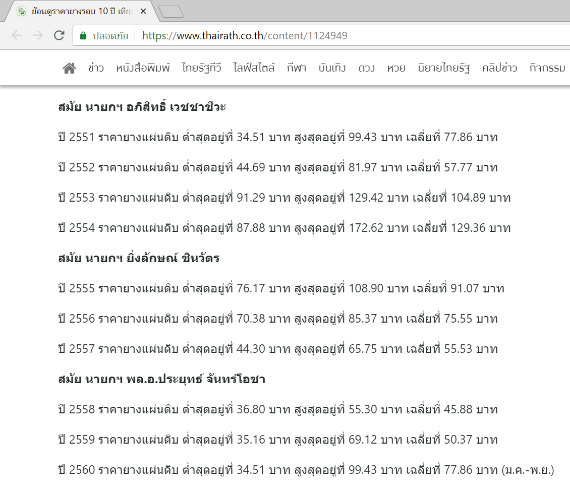 ก่อนอื่นผมขอย้อนดูราคายางในอดีตสักหน่อยนะครับ