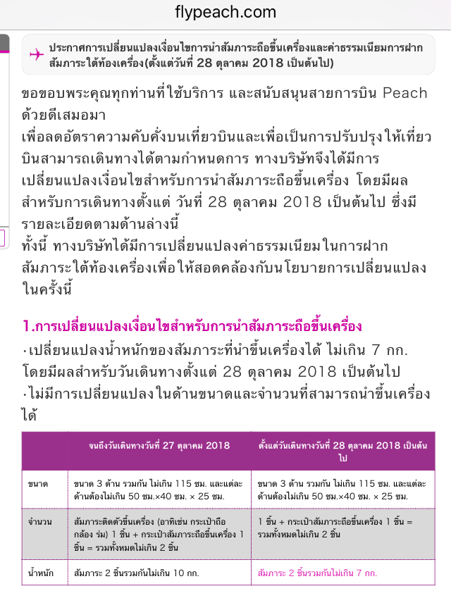 สายการบินพีช ประกาศลดน้ำหนักกระเป๋าขึ้นเครื่องเป็น 7 กก.