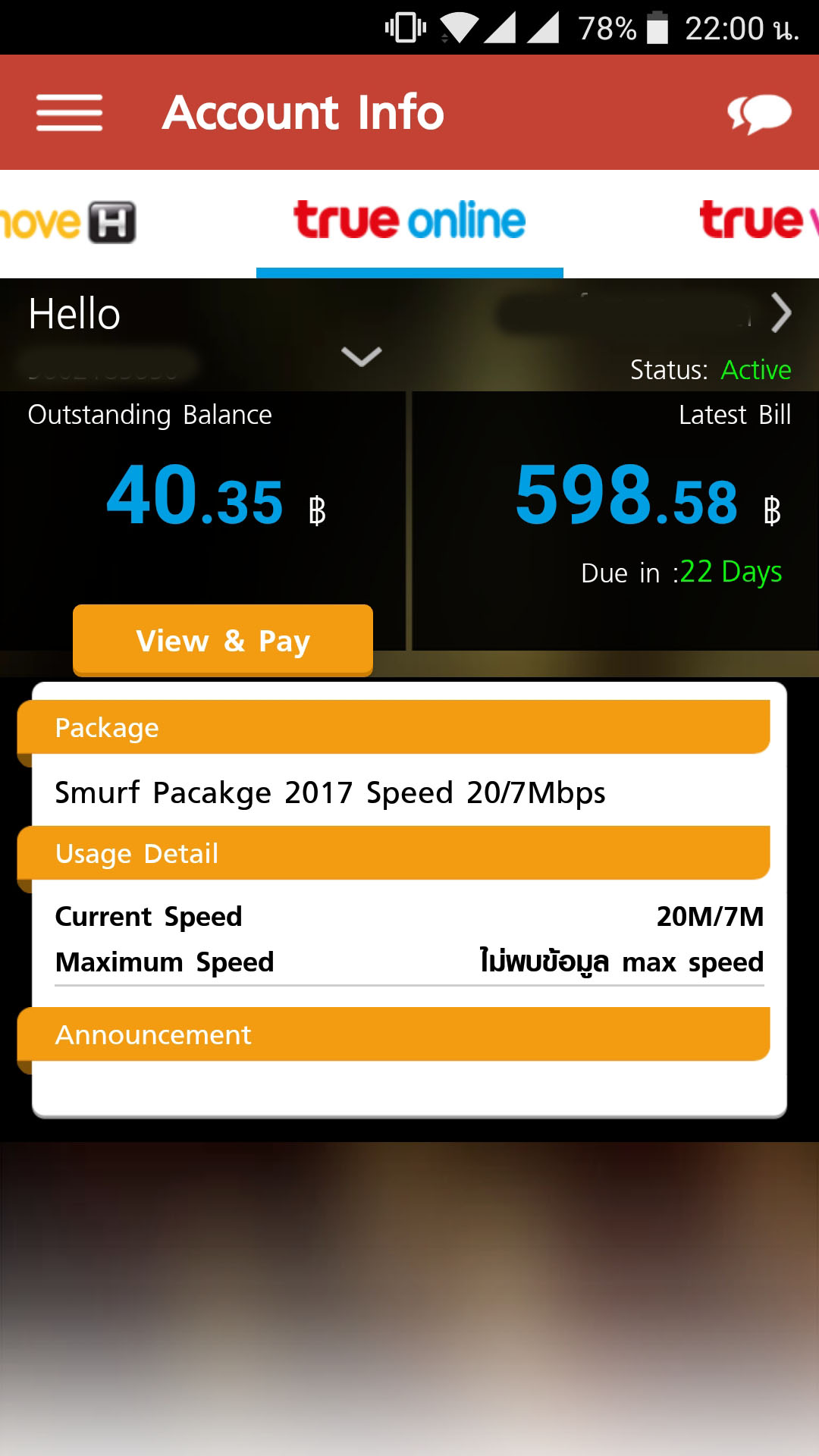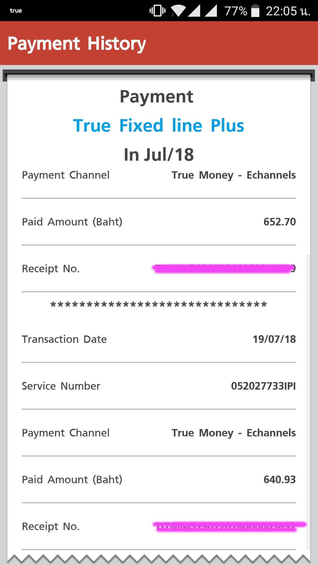 ตัวเองผมเองปรับเปลี่ยนโปรของทรูไปทั้งหมด 3 ครั้ง ครั้งแรกช่วงที่ไปทำงานที่ปราจีนบุรี ทำนานปีกว่าเห็นจะได้ ก็ไปปรับลดความเร็ว ตอนนั้น 4/1mb คิด 259 บาท (ถ้าจำไม่ผิด) ครั้งนั้นทำที่สาขา แถวๆมีนบุรีในห้าง BigC ต่อมา ลาออกกลับบ้าน ก็ไปปรับโปรที่เซ็นทรัล สาขาเชียงราย จากเดิม 4/1mb ก็มาเป็น 30/7mb สุข x3 ชิวตเหมือนจะดี การเปลี่ยนโปรก็เป็นไปด้วยดี แต่.... มาวันหนึ่ง รู้สึกว่าโปรที่ผมใช้ไม่ยุติธรรม เพราะ 599 ควรจะได้เน็ต 1mb ในมือถือฟรีด้วย แต่ผมไม่ได้ พนักงานเลยเปลี่ยนเป็น 30/5mb ได้ทั้ง เน็ต ทรูวิชั่น และเน็ตมือถือ ก็เปลี่ยนครั้งนั้น ทำให้ต้องจ่ายบิล 2 บิลใน 1 เดือน ซึ่ง พนักงานก็ อธิบายว่า เดือนนี้ จะ จ่าย 2 รอบ แต่เดือนหน้าไม่ต้อง ซึ่งก็จริง เดือน มกราคม ผมจ่าย รวมๆก็ 1297.09 บาท แต่เดือน กุมภาพันธ์ ไม่มีค่าใช้จ่ายใด้ๆ หลังจาก อยู่บ้านจนชิว ทำงาน เชียงรายเริ่มรู้สึกว่าต้องทำไรที่มันได้พัฒนา ก็ลาออก (ซึ่งไม่ได้เป็นความคิดที่ดี) มาทำงานใน กทม. ก็เลยทำเรื่องลด โปรเน็ตอีกครั้ง เห็นทรูที่เซ็นทรัล เชียงรายเขียนว่ามี 299 บาท 20/7mb แต่ไม่มีเน็ตมือถือ และทรูวิชั่น ซึ่งส่วนตัวผมมีเน็ตทรู ซิมเทพอยู่แล้วเลย ทำเรื่องไป ผลคือ ทำเรื่องช่วง 11 กรกฏาคม และพนักงานเองก็แจ้งว่าจะมีคนมาเก็บกล่องทรูคืนในวันที่ 18 กรกฏาคม แต่ จะตัดสัญญามือถือจาก รายเดือน 1 MB เป็นเต็มเงินในทันที (แต่เดือนกรกฏาคมก็ยังจ่าย 599 บาท นะ 2 รอบด้วย) ตอนนั้นก็ได้รับคำตอบจาก ทรู support ที่สาขาโคราชว่าจะทบไปเดือนถัดไป และ คุณฉลาดก็บอกเหมือนกัน แต่วันนี้ เดือน สิงหาคม มียอดชำระ 40 บาท... งง ไหมละ เพราะเดือน สิงหาคมเป็นเดือนที่ผมใช้งานที่ความเร็ว 20/7MB ทั้งหมดทั้งเดือน เน็ตมือถือก็ไม่ได้ใช้ แถม กล่องทรูวิชั่นก็ไม่มีที่บ้าน ไม่ได้ดูแล้วด้วย