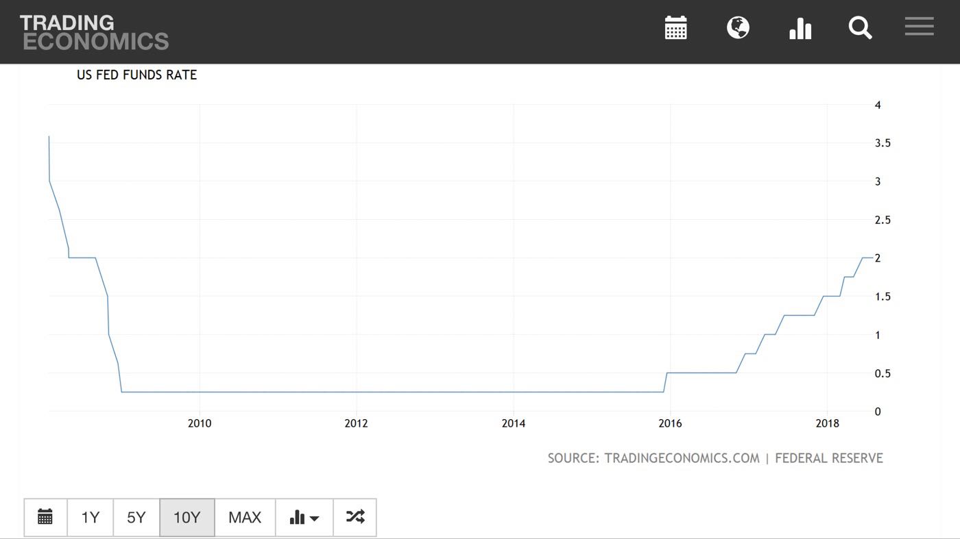4. กราฟอัตราดอกเบี้ยนโยบายของธนาคารกลางสหรัฐ ช่วงปี 2010 - 2016