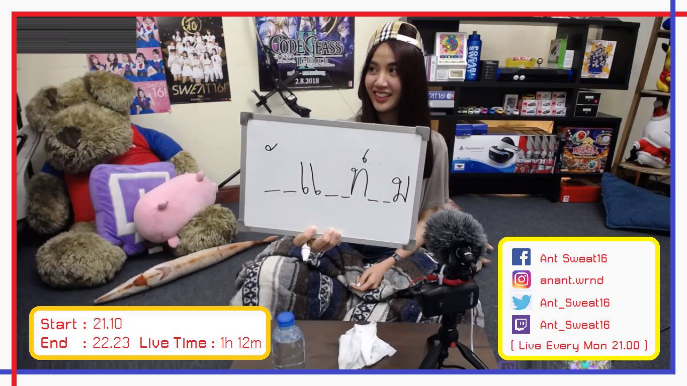 - แล้วก็เข้ามาช่วงเล่นเกมทายคำกัน แบบไลฟ์คุณเพชรนั่นแหละ แคปเต่าจะเขียนพยัญชนะแล้วให้แฟนคลับเติมคำในช่องว่าง ...เปิดคำแรกมาก็โหดแล้วครับ ฮาาา