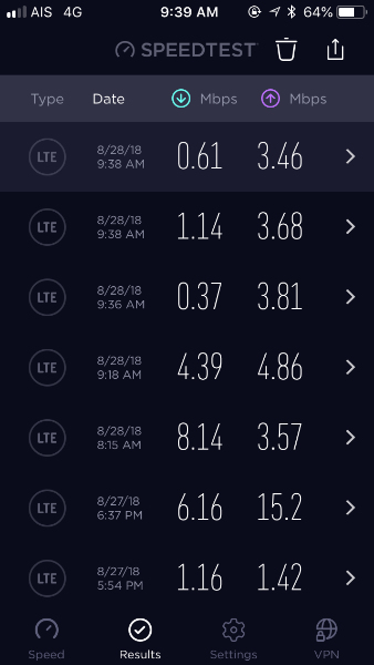 นี่เป็นภาพทดสอบความเร็ว AIS 4G Max Speed และบางทีก็หลุดไปเฉยๆ ตอนทดสอบ