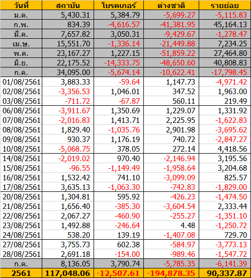 Sinthorn Summary 31/8/2561 : ต่างชาติขายสุทธิ -680.13 ลบ.