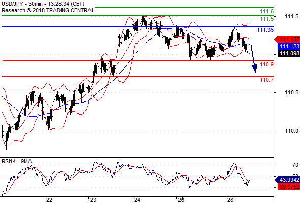จุดที่ต้องการ: สถานะขายต่ำกว่า 111.35 เป้าหมายต่อไปที่ 110.90 และ 110.70