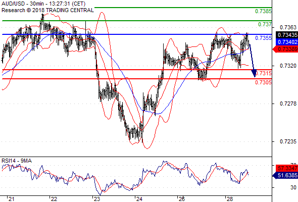 จุดที่ต้องการ: สถานะขายต่ำกว่า 0.7355 เป้าหมายต่อไปที่ 0.7315 และ 0.7305