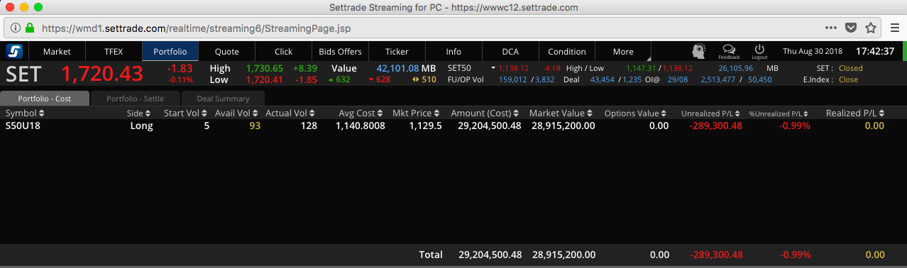 เสี่ยง เพราะ SET ไม่สามารถปิด New high SET50 ไม่สามารถปิด New High ได้ Future ไม่สามารถบอกอะไรได้ ถ้าไม่ผ่าน 1720 ถือว่าตลาดอ่อนแอ แต่ ....ตามดูแท่งเทียน.... โดยไม่สนอารมณ์ และ จิตวิทยา ... ยังมอ