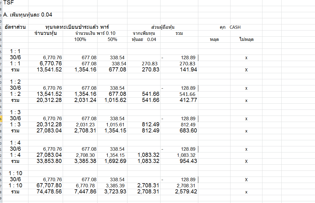 0.04 ต้องสูงกว่าอัตราส่วนเพิ่มทุน 1 : 10