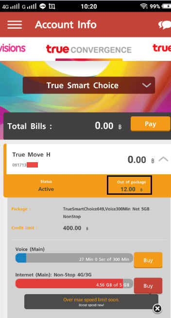 ทรูครับ ล่าสุด login เข้าไปใน iservice เจอ 12 บาท ดังรูป ยอดโทร ยอดเน็ตยังไม่เกินนะครับ