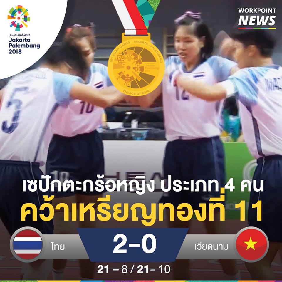 ยินดีกับทีมเซปักตะกร้อหญิงของไทยที่คว้าเหรียญทองมาได้ล่าสุด ไทย ชนะ เวียดนาม 2 -0 เซท