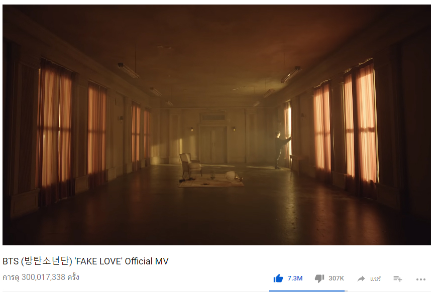 โดย Fake Love นับเป็น MV ตัวที่ 6 ของบังทันโซนยอนดันที่มียอดวิวใน YouTube สูงถึง 300 ล้านวิว