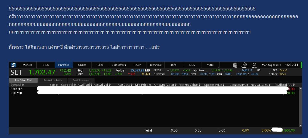 ติดอะไร.... ก็ติดเส้นแดงผ่านยากของเซียนเหลาเหมือนเดิม.... เพิ่มเติมคือ ระดับที่ลดลงมาคือ SET50=967.... แปะ ระบบเทรด DW ไม่ได้จะฝืนความบ้าคลั่ง ถ้าย่อสวยๆ จะเล่น Call หนึ่งรอบ ย้ำว่า แค่หนึ่งรอบ...