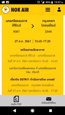 แต่ขากลับ เราพิจารณาอย่างถี่ถ้วนแล้ว ทั้งรถไฟ รถทัวร์ พบว่า มีแต่รอบดึก แล้วถึง กทม. เช้าอีกวัน ซึ่งเราไม่สะดวกมากๆ จึงหลีกเลี่ยงไม่ได้ที่จะเดินทางด้วยเครื่องบิน (ส่วนตัวเป็นคนไม่อยากนั่งเครื่องบิน เพราะต้องมาระวังสัมภาระตัวเองอีก)