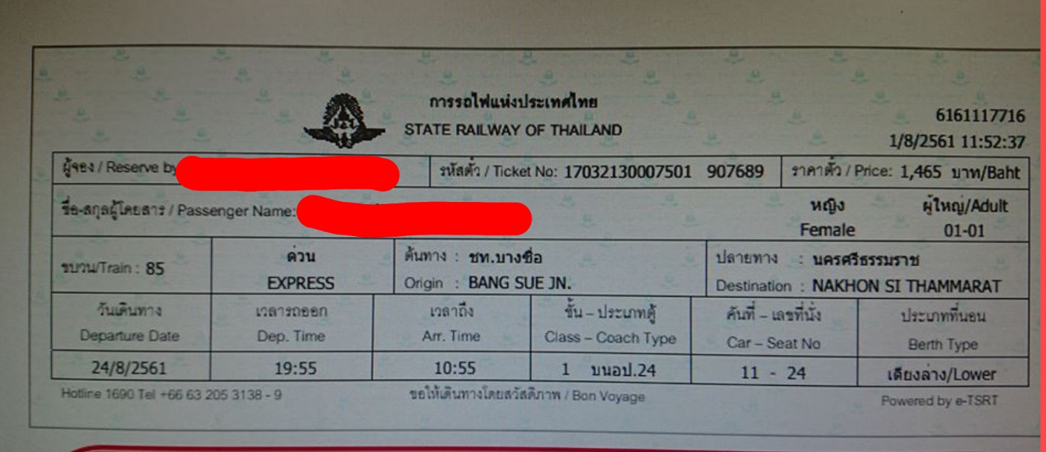 เลยเดินออกจากห้อง แล้วมาตั้งใจฟังที่หน้าต่าง ได้ยินชัดจะจะเลยว่า "ที่นี่ปลายทาง นครศรีธรรมราช ...."