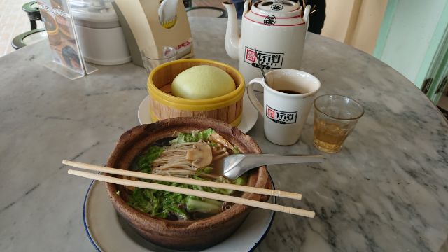 หลังจากดูเมนู เราก็จัดบะกุดเต๋ไก่ กับหมั่นโถฟักทอง และกาแฟโกปิ๊อ้อ ซึ่งที่ินี่ มีน้ำชาฟรีด้วย ดีจัง