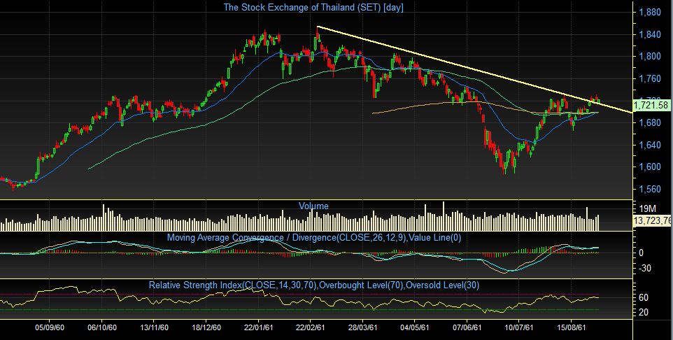 บรรยากาศการซื้อขายตลาดหุ้นไทยดูเงียบเหงา และเมื่อวันศุกร์ ดัชนี SET index ก็ปิดตัวไปที่ระดับ 1721 จุด +1.15 จุด วันนี้มาติดตามกันต่อ